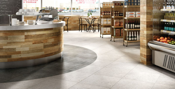 • Aspect terrazzo et béton avec des paillettes pour un nouveau style commercial frais.