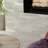 La photo de couverture présente le Center City™ Arch Grey Marble 12 x 24 au sol et la mosaïque linéaire Delancey Grey Marble sur le foyer.