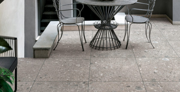 Les dalles de pavage coordonnées de 2 cm dans un format de 32 x 32 intègrent l’intérieur à l’extérieur.