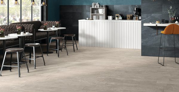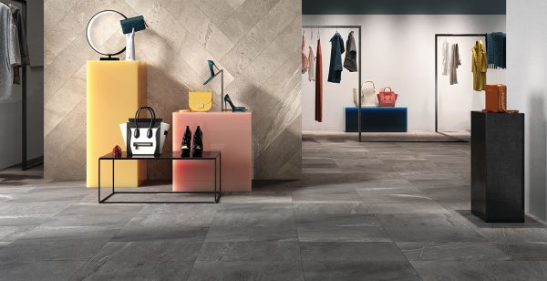 Aspect pierre contemporain en cinq couleurs, du beige clair au gris foncé